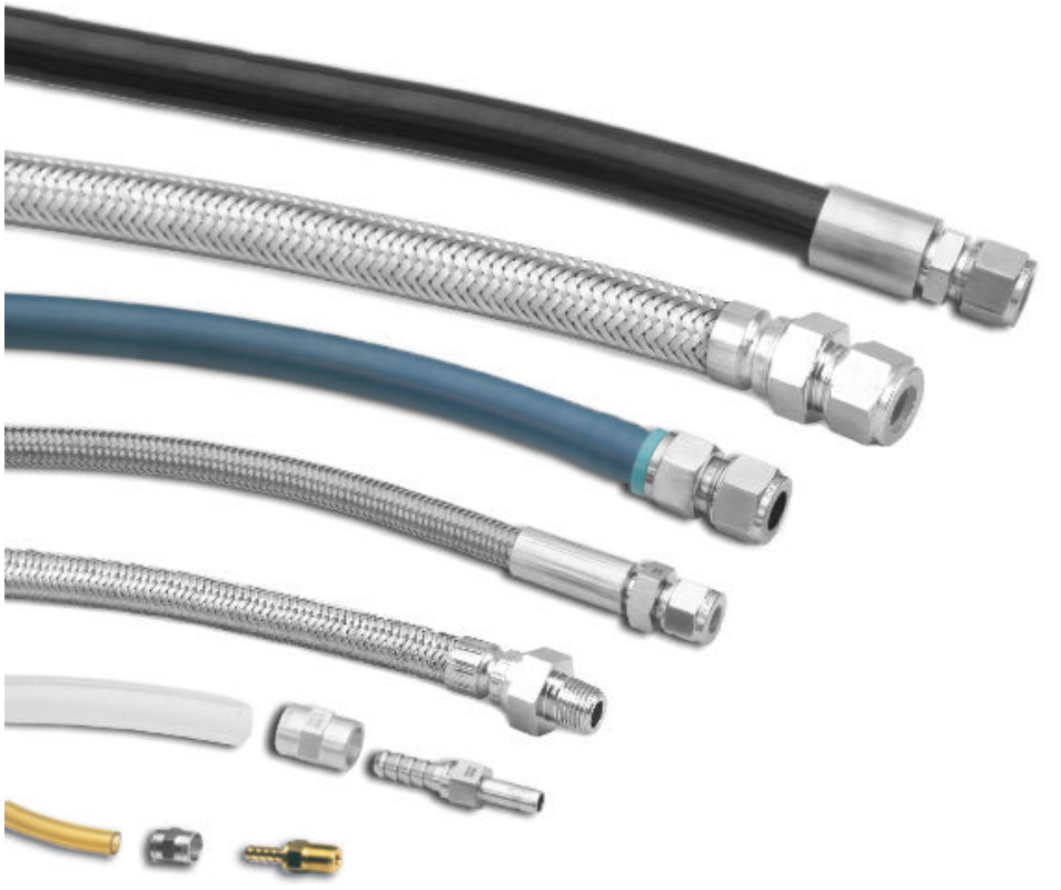28 软管和软管接头 内管和接头材料:316 不锈钢,外编织层材料:304 不锈钢 (也可提供316),可用于真空和正压系统中