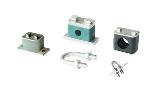 35 管夹 遵照DIN标准设计。Tube pipe 管 管 外径尺寸范围为 至 。 ( ) 5.5 mm 61 mm。支撑管道系统。防震防噪音设计。