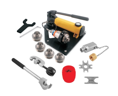34 卡套管工具 适用于弯曲外径从 至 和 至 的不锈钢管和铜管。与滑块相比,螺丝辊能降低弯曲力和管子的椭圆度。弯曲范围从 1° 到 180°。