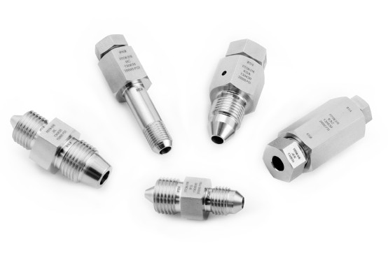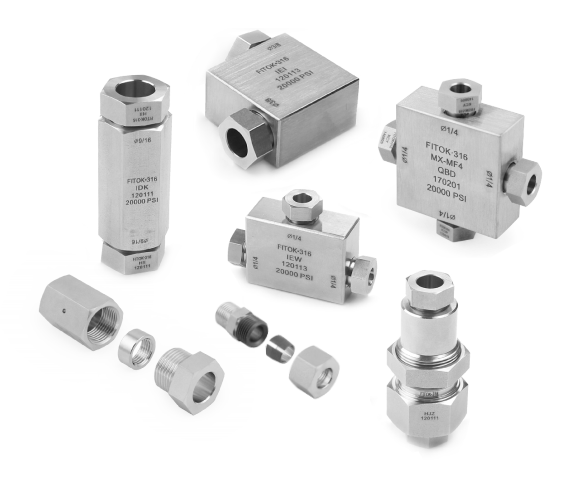 中高压管阀件:接口尺寸范围为1/8"至1",工作压力从10,000psig至60,000psig,温度范围为-252℃至649℃,主体材料为高强度316不锈钢