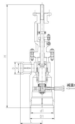 43 高压旁路阀 角式或Z型阀体,锻焊结构。阅芯带副阀算设计,操作力小,动作灵活。